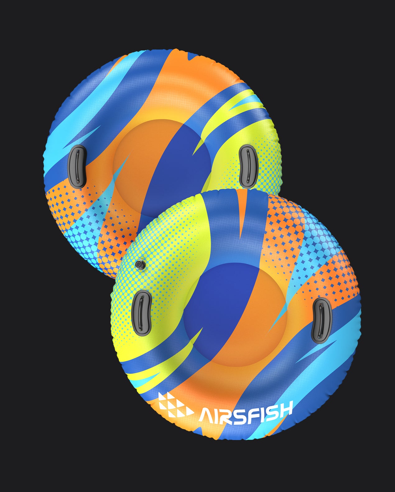 - Upgrade strengthened large handles & comfortable seat: Handles large enough for gloved use, strong sewn-in handles for you to safely hold onto as you fly down the snowy slopes. The streamlined groove bottom design makes the sleds float faster and smoother. Deeper seat position provides you with a great cushy ride down the hill with minimum risk. Airsfish inflatable snow tube for snow is portable and foldable, you can take it to any place you want